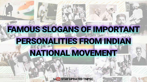 In this video, I have given some famous slogans from Important Personalities. Each and every point in this video are important. Do watch this video till the end so that you will get good idea about this. Mainly useful for all Tnpsc group 1, group 2 and group 4 exam aspirants.